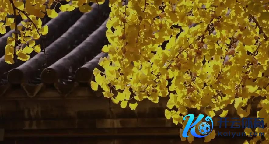 当微风吹过,满园的银杏叶如同金色的雨,扬扬洒洒地飘落下来,金色的银杏叶铺满了大地,仿佛一条金色的地毯,颜色斑斓的树叶与古旧斑驳的青瓦逸态横生,为冬日增添了一份诗情画意。
