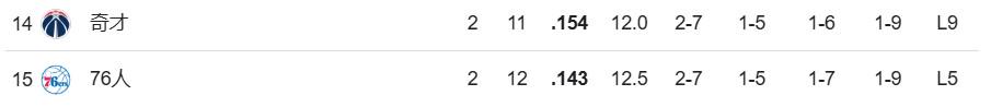 而本场事后,多赛一场的76东说念主“杰出”奇才(2胜11负),独享定约倒数第一(2胜12负)。