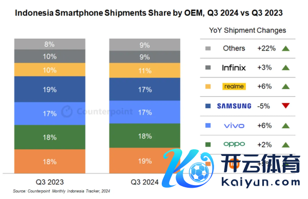 当先,2024年第三季度公共智高手机销量同比增长2%,出货量达到3.07亿部,这是自2018年第三季度以来初次在第三季度达成同比增长。