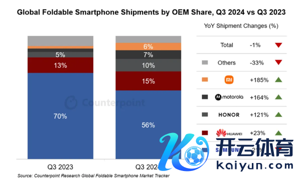 此外,2024年第三季度,公共折叠屏手机销售额前五的厂商辞别为:三星、华为、荣耀、摩托罗拉和小米。