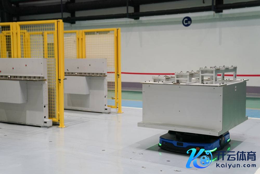 AGV小车搭载叶片部件行驶在东方汽轮机有限公司的叶片加工无东谈主车间。新华社记者 胥冰洁 摄