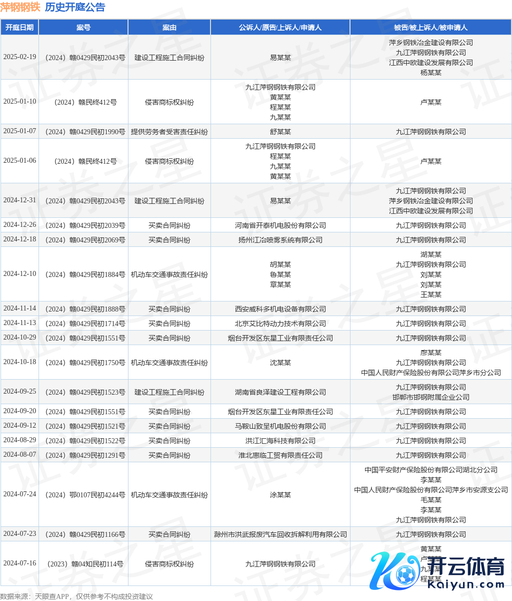 本站音信,阐发天眼查APP表示体育游戏app平台,近日公布了一则九江萍钢钢铁有限公司动作被告/被上诉东谈主的开庭公告,详备实质如下: