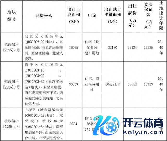 1月10日,浙江省杭州市缱绻和当然资源局发布3宗涉宅地块使用权挂牌出让公告。3宗宅地诀别位于上城区、临平区和滨江区,地皮面积61908平素米,建筑面积159311.3平素米,肇始总价23.305亿元;拆伙报价时辰为2月20日,本次挂牌出让宗地实验开脱竞价,按照价高者得的原则细则竞得东说念主。