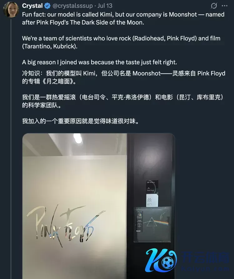 团队成员Crystal曾在社媒发文说:“咱们是一群可爱摇滚和电影的科学家。我加入的一个要害原因即是以为滋味很对味。”