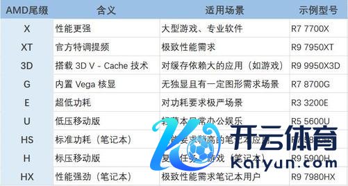 为了便捷巨匠查阅,我们将AMD的尾缀含义制作成一张表格,巨匠不错进行比对。